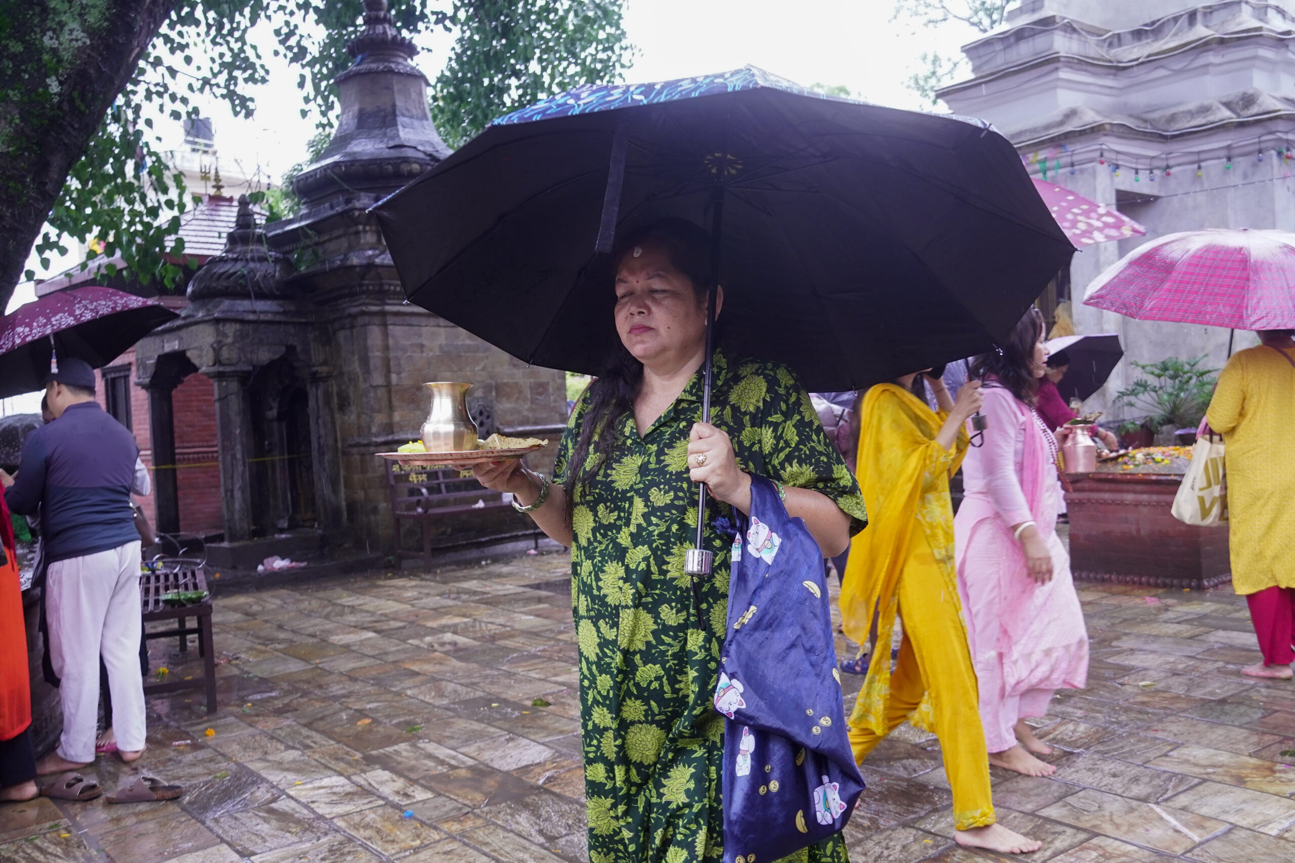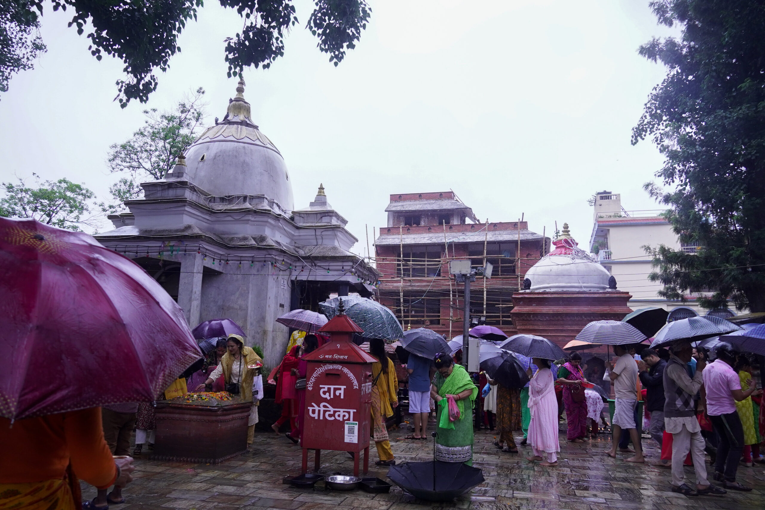 काठमाडौं । साउनको दोस्रो सोमबार शिवालयहरूमा भक्तजनको भीड छ। गए रातिदेखिको निरन्तरको वर्षाका बाबजुद पनि भक्तजनहरु छाता ओढेर काठमाडौं कोटेश्वर स्थित महादेवस्थान पुगेका छन् । महादेवस्थान मन्दिरमा साउन महिनाको सोमवार विशेष पूजाआजा हुने हुँदा भक्तजनको भीड लाग्ने गरेको छ ।